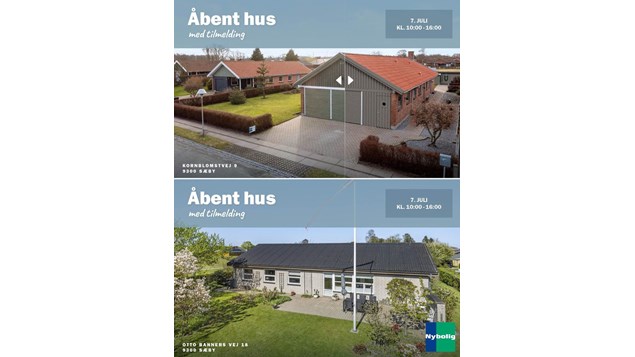 Åbent hus med tilmelding på to ejendomme søndag d. 7. juli