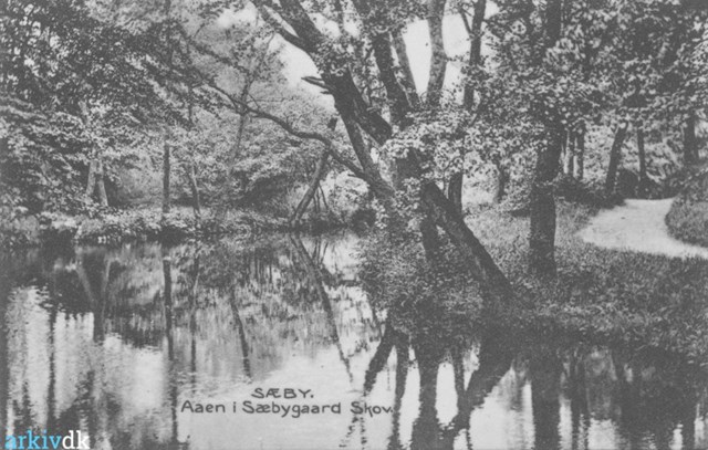 Foto: Arkiv.dk / Åen i Sæbygaard Skov der lå i området nær Rolykke