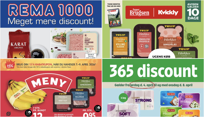 SuperBrugsen tilbyder Tulip Pålækker pålæg i flere varianter til en pris af 10 kr. pr. pakke. Tilbuddet gælder fra tirsdag den 7. april til torsdag den 16. april.