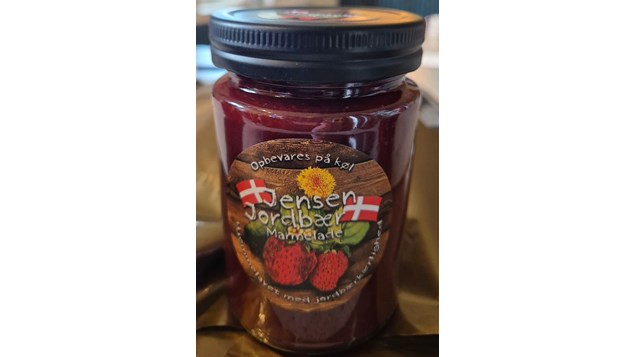 Så har vi den lækre marmelade som producerer til os. Produceret af vores egne bær, men den produceres, så vi også kan sælge den i butikkerne.