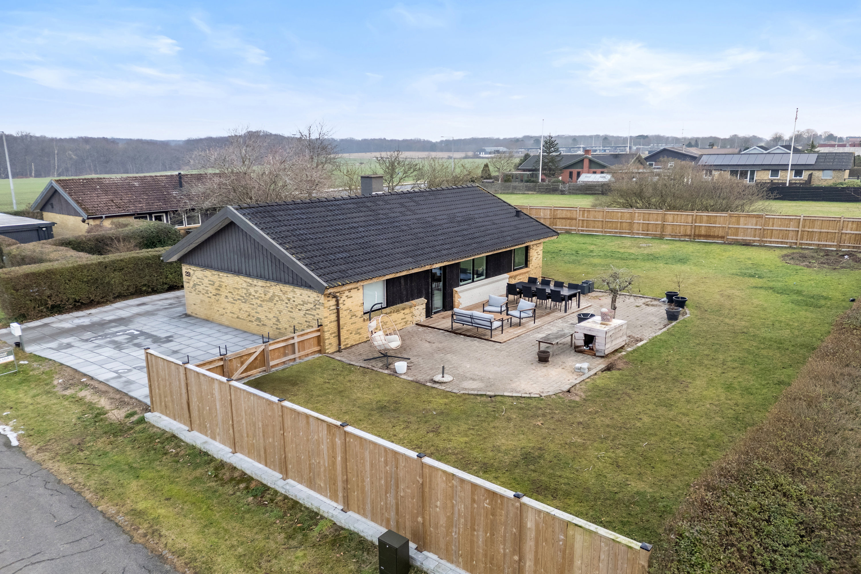 Velkommen til Sofie Brahes Vej 29 – en fantastisk etplansvilla i Vestbyen, hvor komfort, ro og en indbydende atmosfære går hånd i hånd.