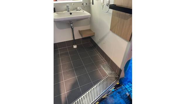 Der fik målt op, lavet afløb og riste i 316 syrefast.
