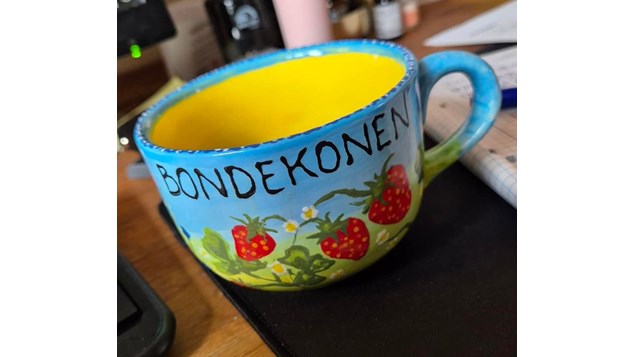 PS: Se lige hvor heldig bondekonen har været - taaaak Charlotte Rømming alias Den Bette Maler - den kop er SÅ elsket og vasen