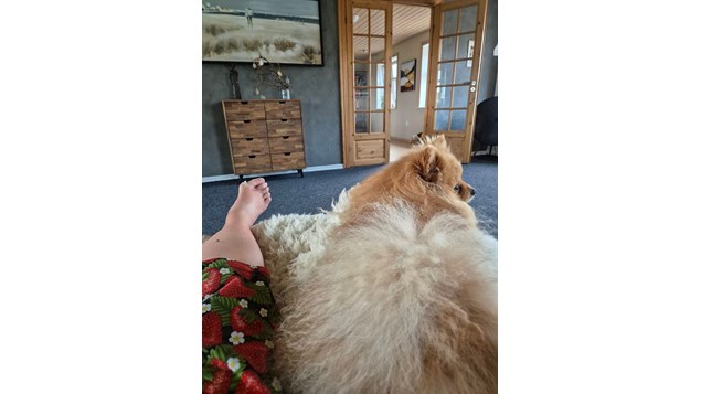 3. Indtager Jensen Jordbær med en værdighed der kun hører pomeranien til - "NU er jeg ankommet, servicer mig"