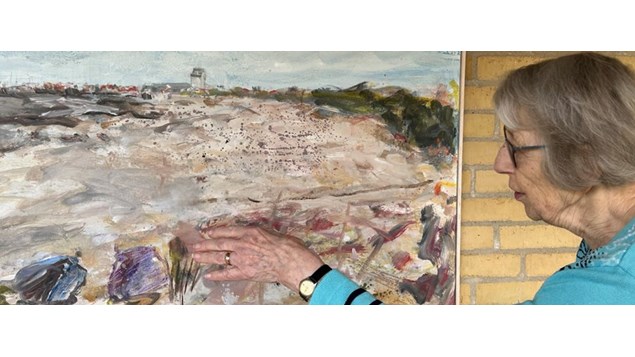 - Det er fascinerende, at man kan mærke sandkornene fra stranden, og der er flot symmetri i farverne, siger Gudrun Tuttle, beboer på Sæby Ældrecenter.