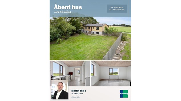 På søndag d. 27/10 kl. 10:00-16:00 afholder vi åbent hus med tilmelding i en charmerende ejendom, der er beliggende i naturskønne omgivelser