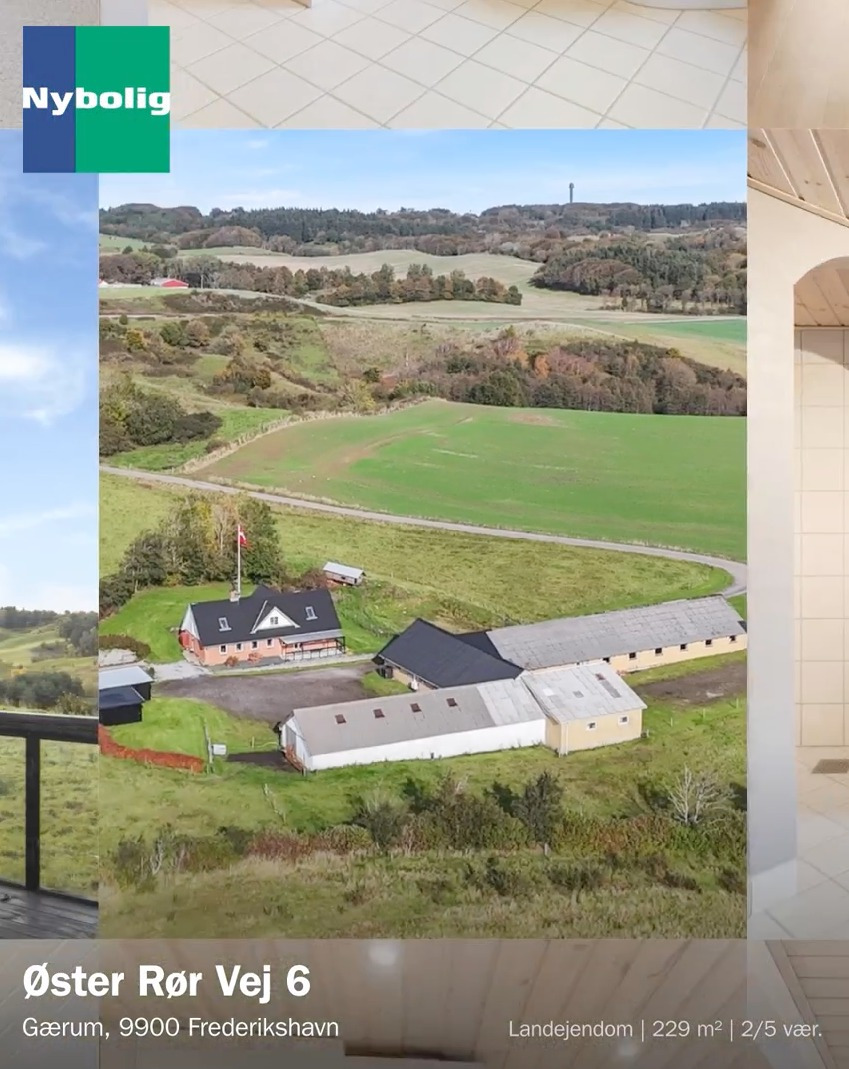 På Øster Rør Vej 6 får I 229 m² bolig med 5 værelser, walk-in og hyggelig stue med udgang til terrasse. Hertil kommer imponerende udhuse med gildesal, hal og plads til både hobby og erhverv