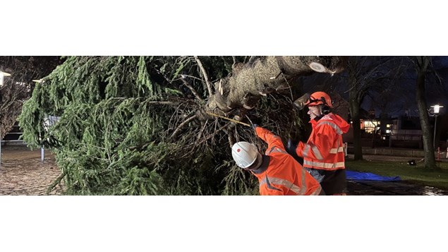 Lysene vil blive sat på træet tirsdag, da det ustadige vejr mandag forhindrede arbejdet. Jensen overvejer at benytte "Skagen-metoden" til belysningen i år, hvilket kunne give træet en særlig glød.